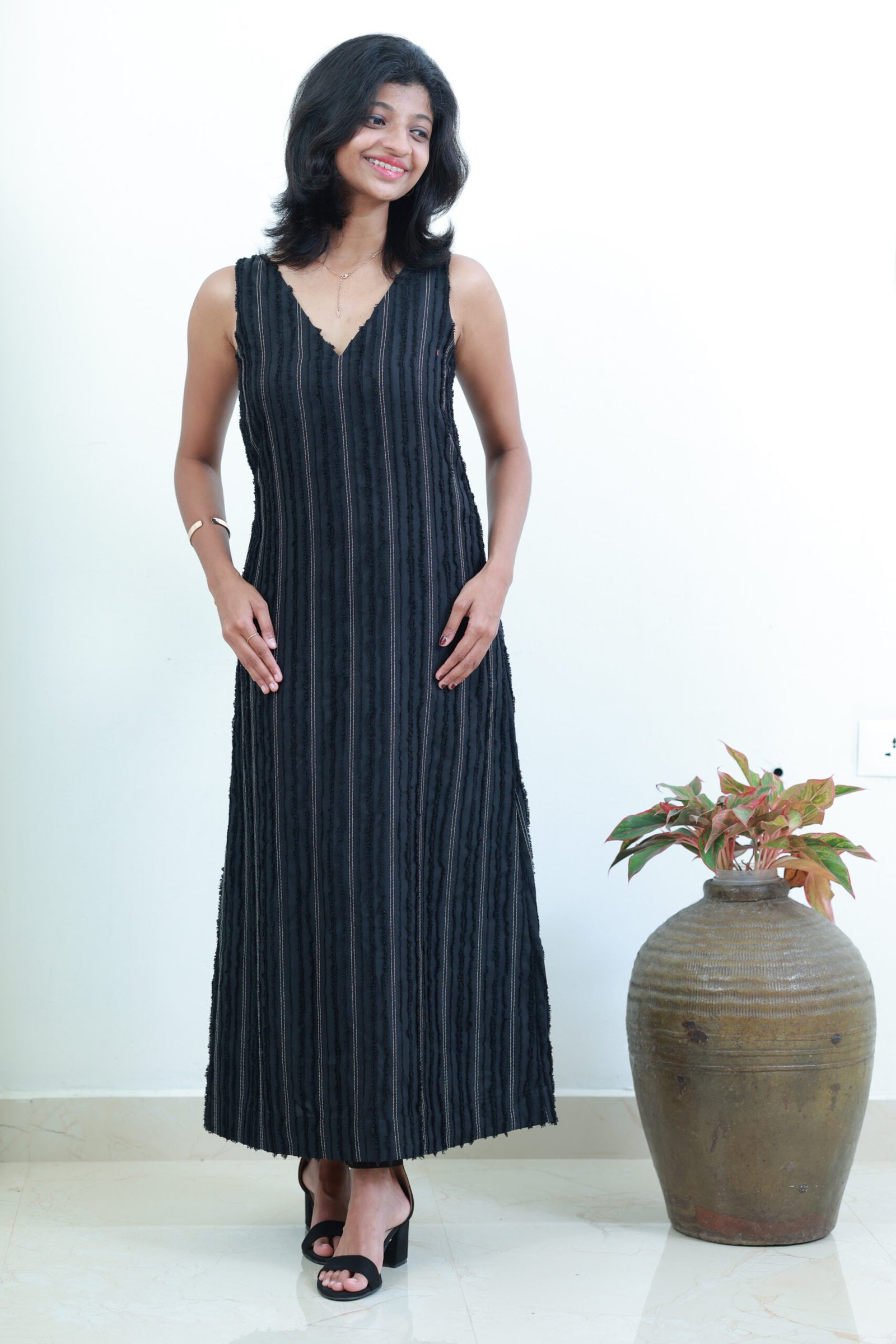 Sleeveless, easy slip-on style - Flowy maxi length with a wide gathered